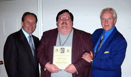 I'm smiling like a mule eating briars in this photo, as I hold my 2003 Cauliflower Alley Club Award, standing next to my managerial idol Bobby 'The Brain' Heenan, and NWA-TNA broadcaster Mike Tenay. "Heaven... I'm in heaven...."